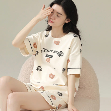 - Relaxed-fit top with short sleeves and matching shorts for comfortable everyday wear