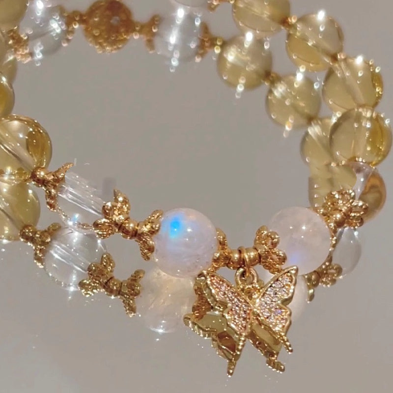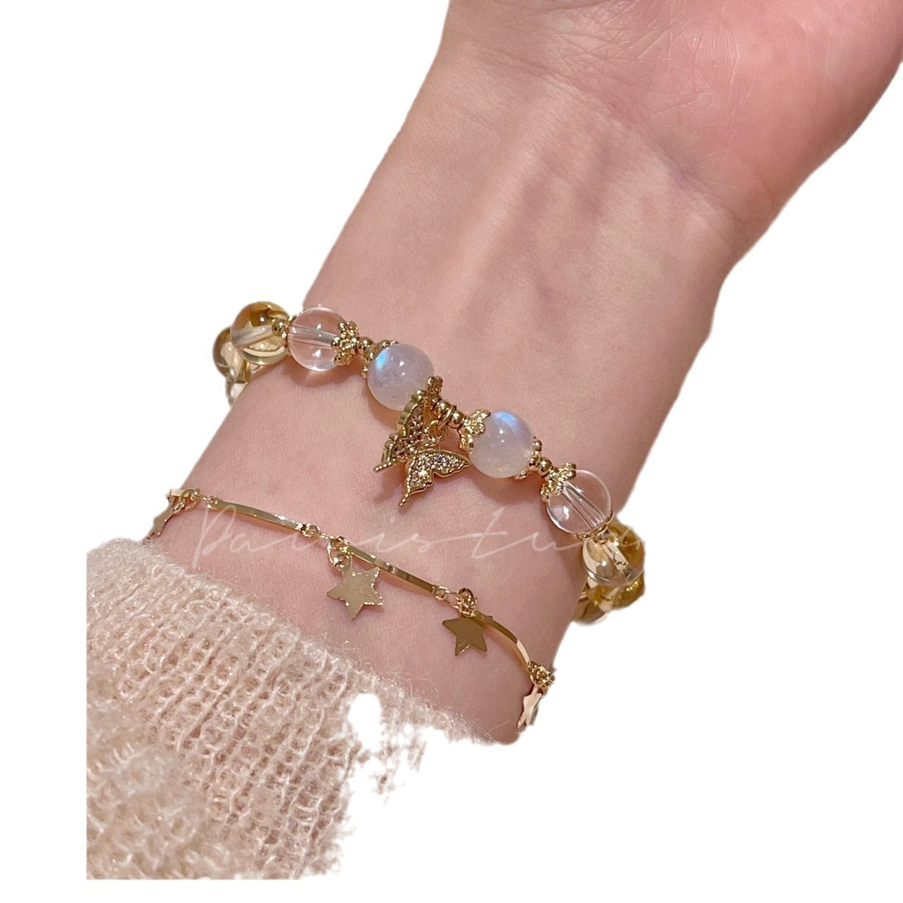 Women's Moonstone White Crystal Beaded Bracelet Fashion