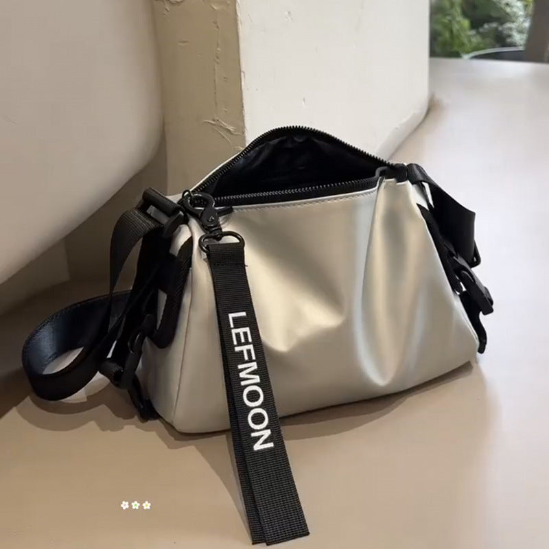 With dimensions of 23 cm long, 15 cm high and 10 cm wide, it holds a phone, keys, wallet, power bank, and sunglasses. The waterproof fabric and clean stitching provide reliable everyday use, perfect for daily commutes and quick getaways.