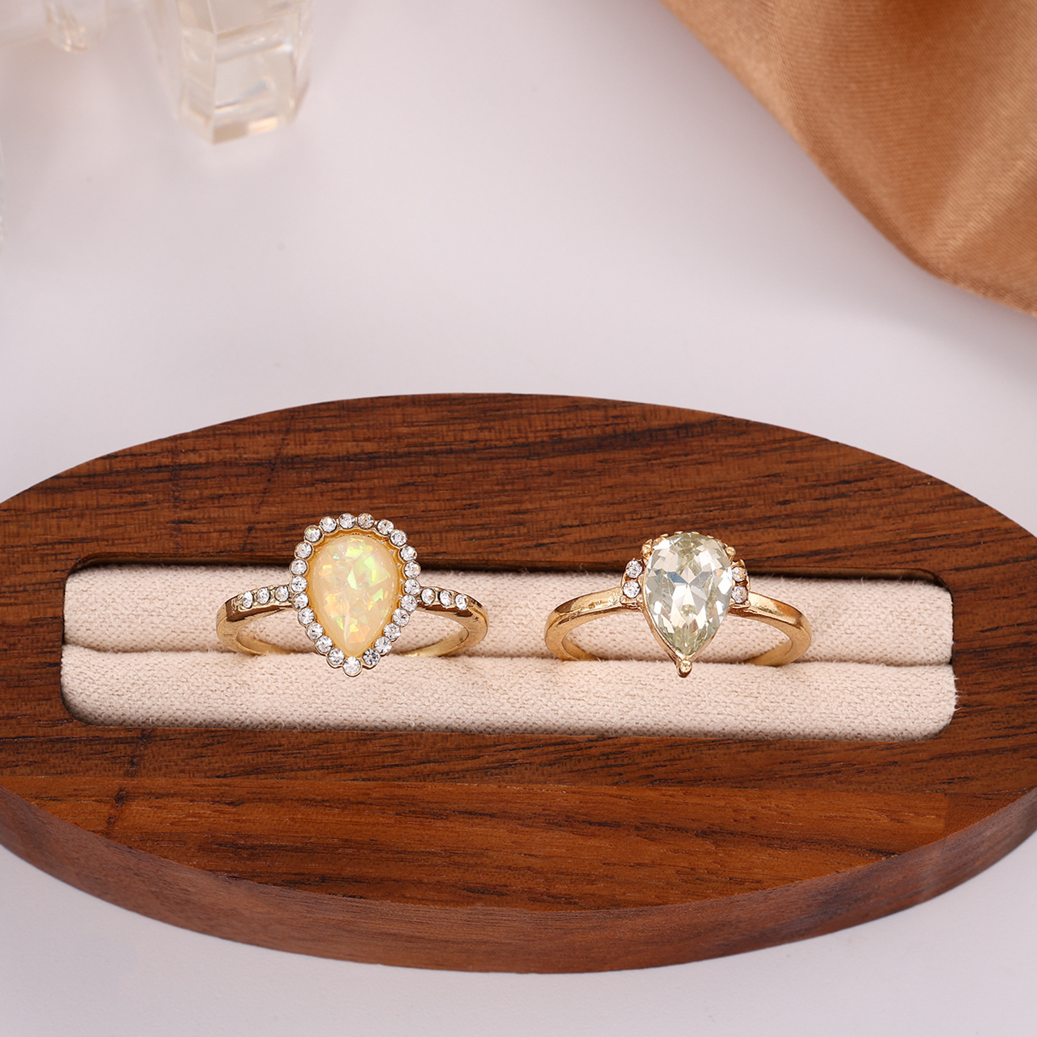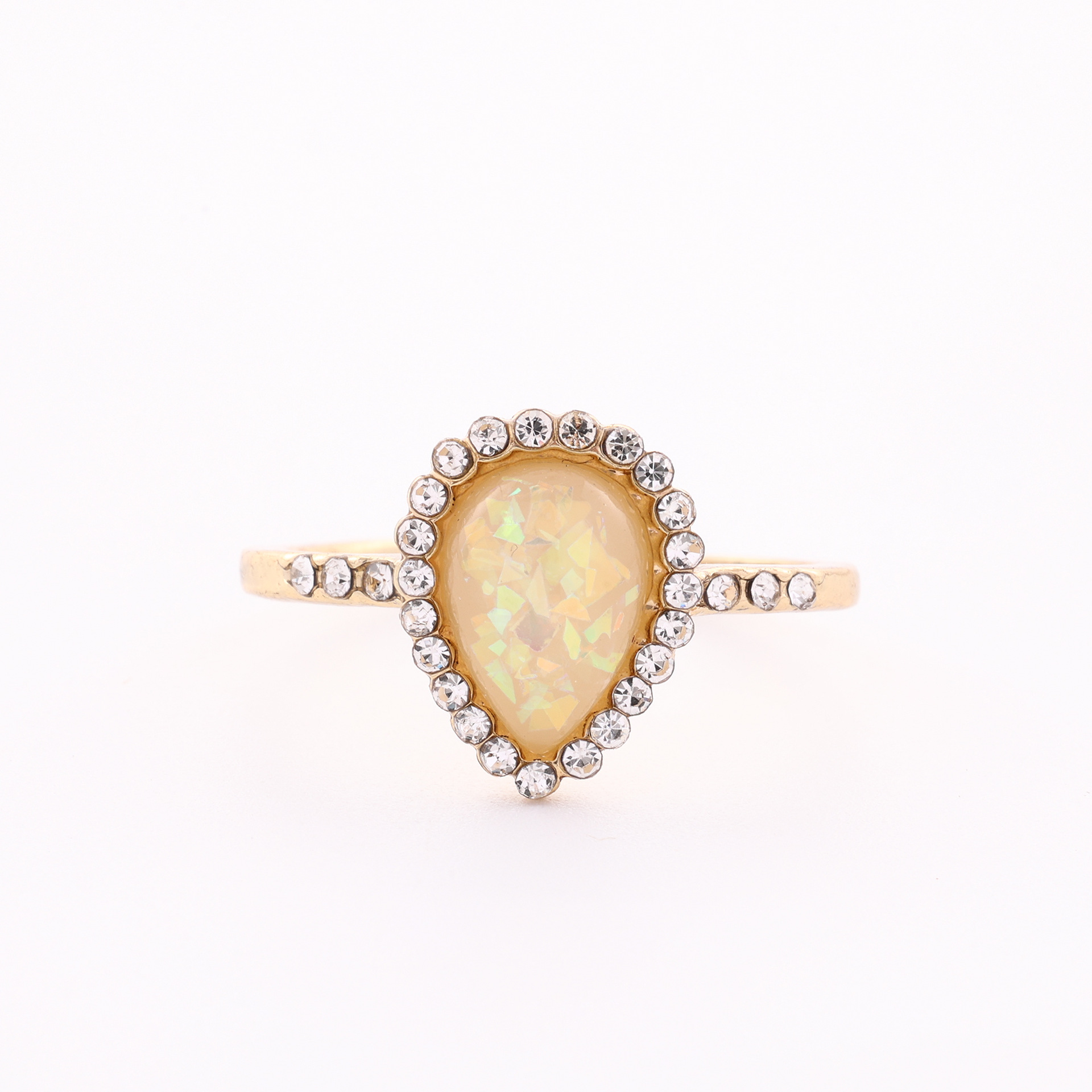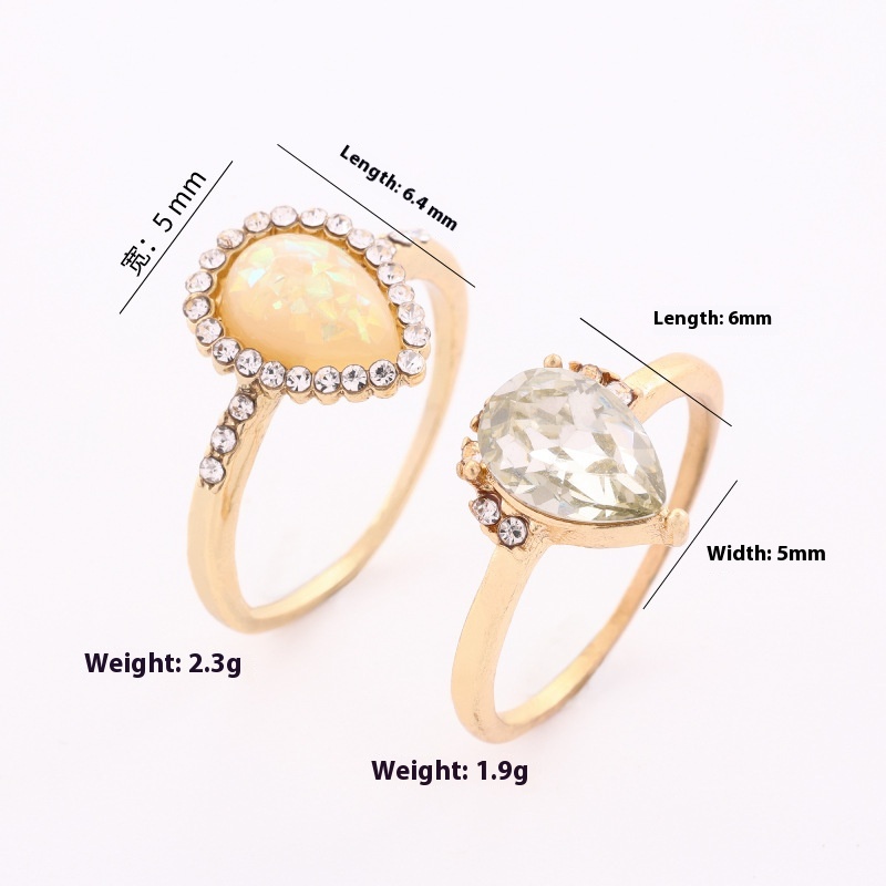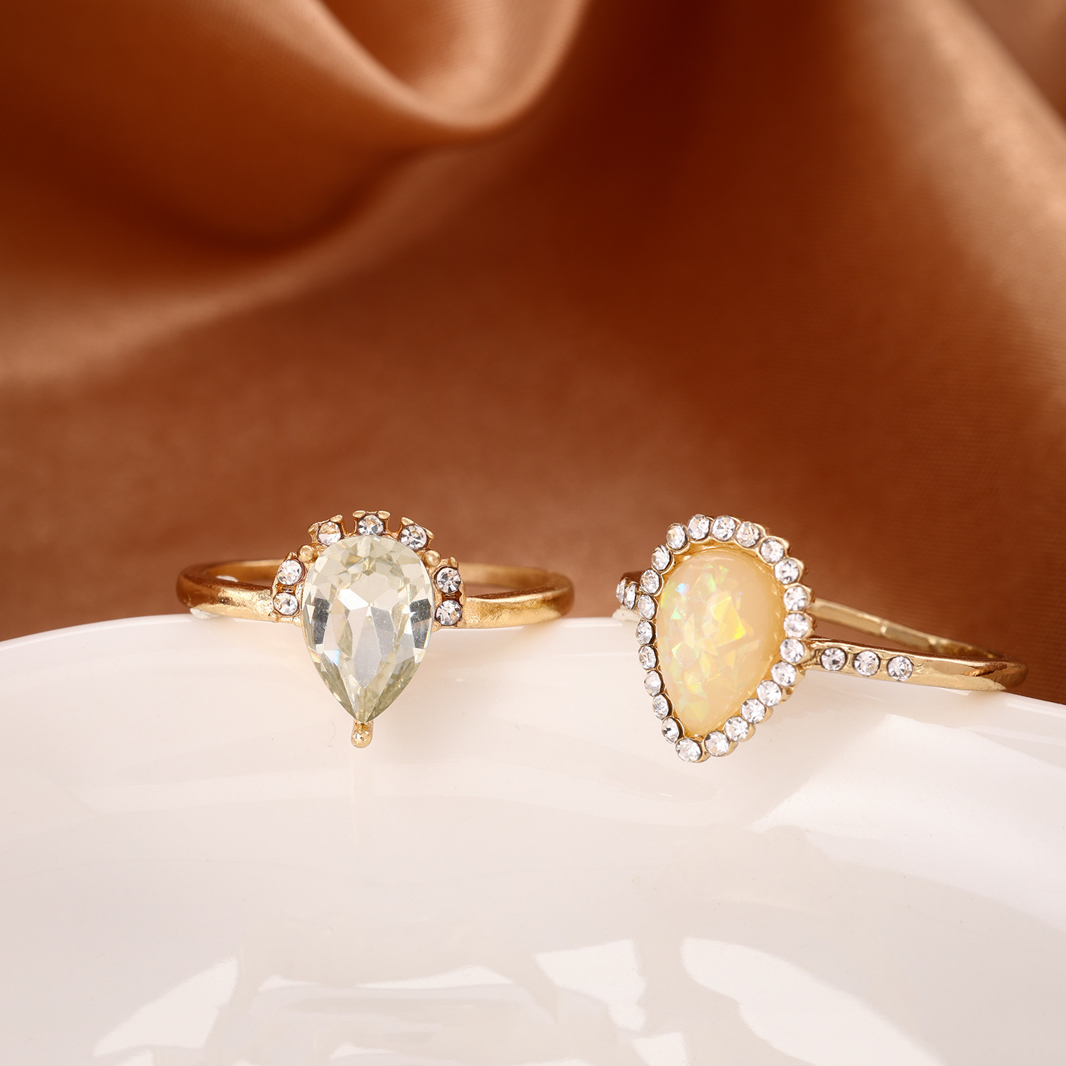 Color: stylish water drop Opal diamond Women's ring, half arc Diamond water drop ring