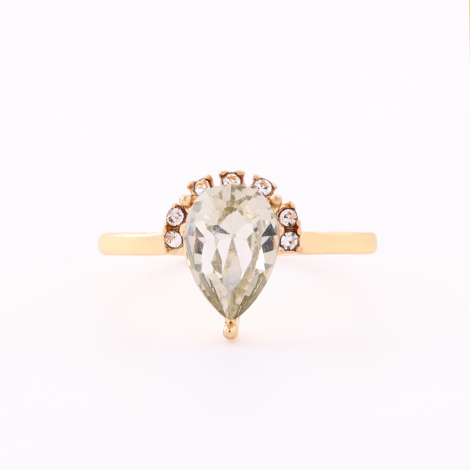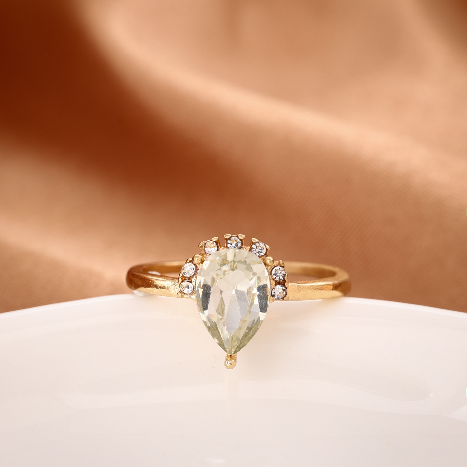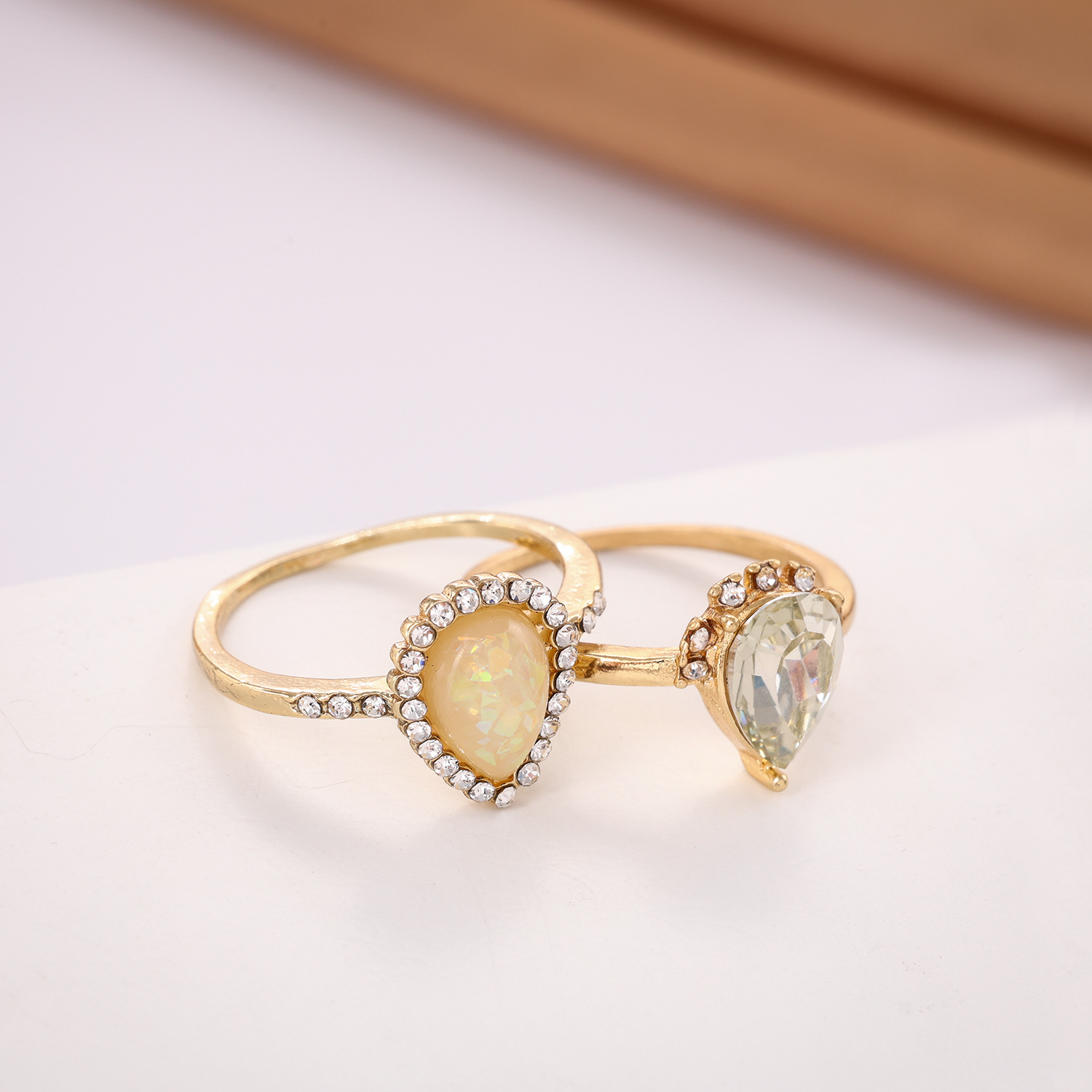 Color: stylish water drop Opal diamond Women's ring, half arc Diamond water drop ring
