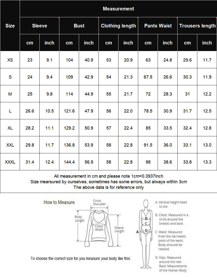 Carefully check the size chart before purchase; color may vary slightly due to screen differences. Packing list: Top + Pants.