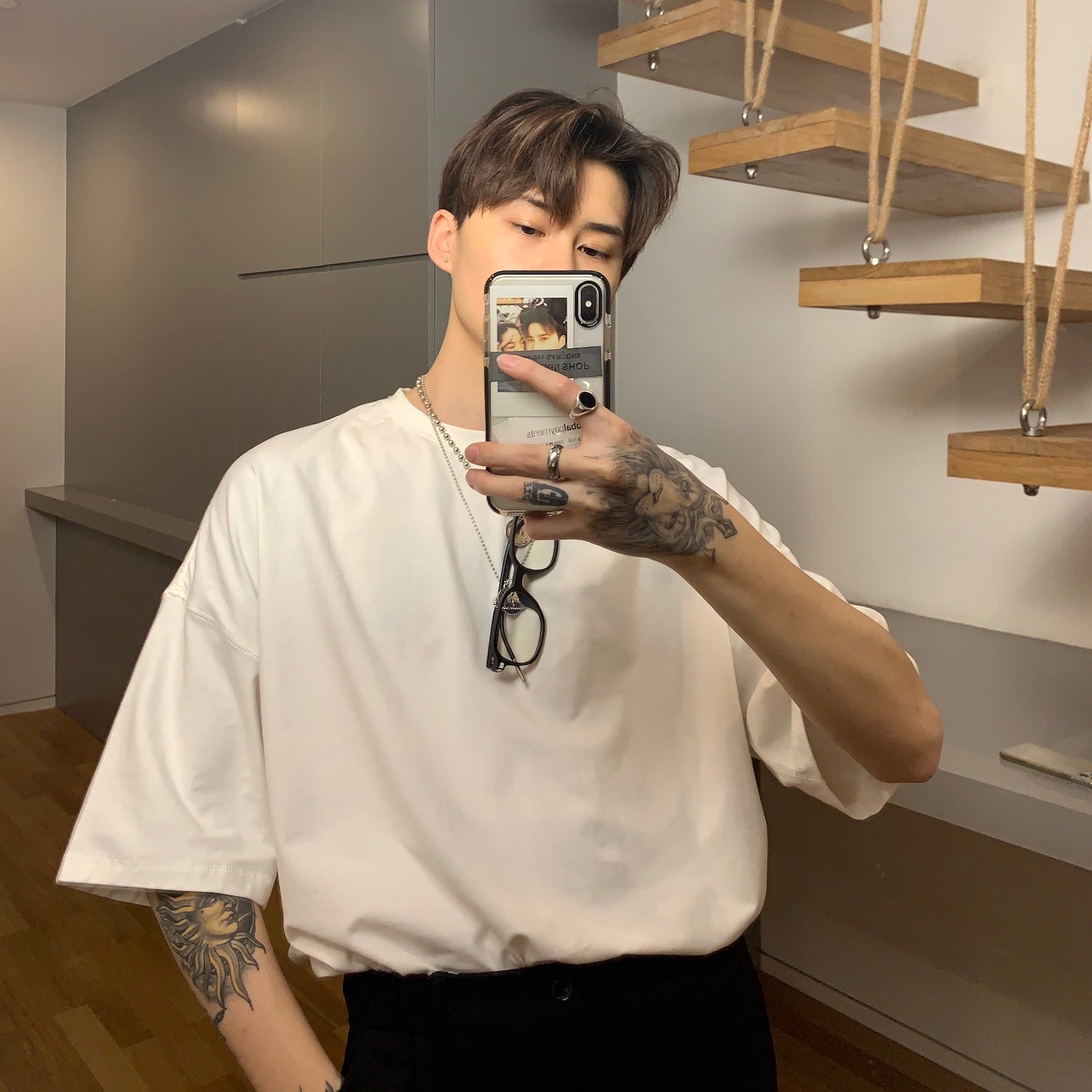 Unisex Pure Cotton Loose Fit T Shirt Solid Color Casual