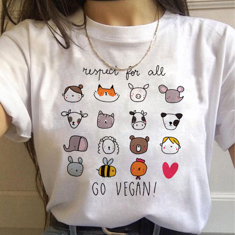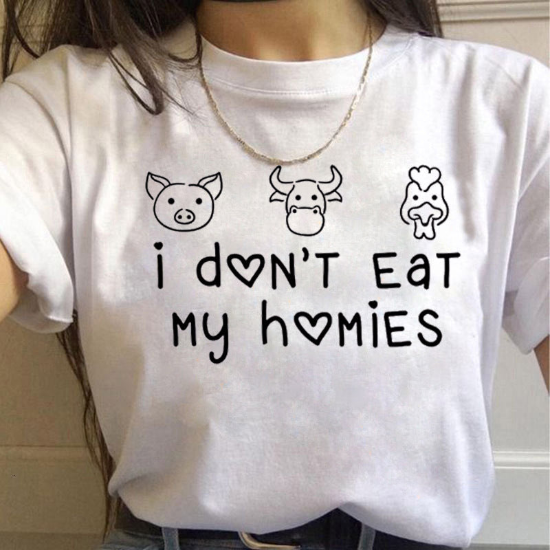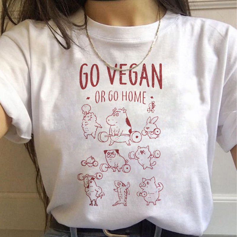 Pure Color Vegetarian Cute Piggy Print Ladies T-Shirt