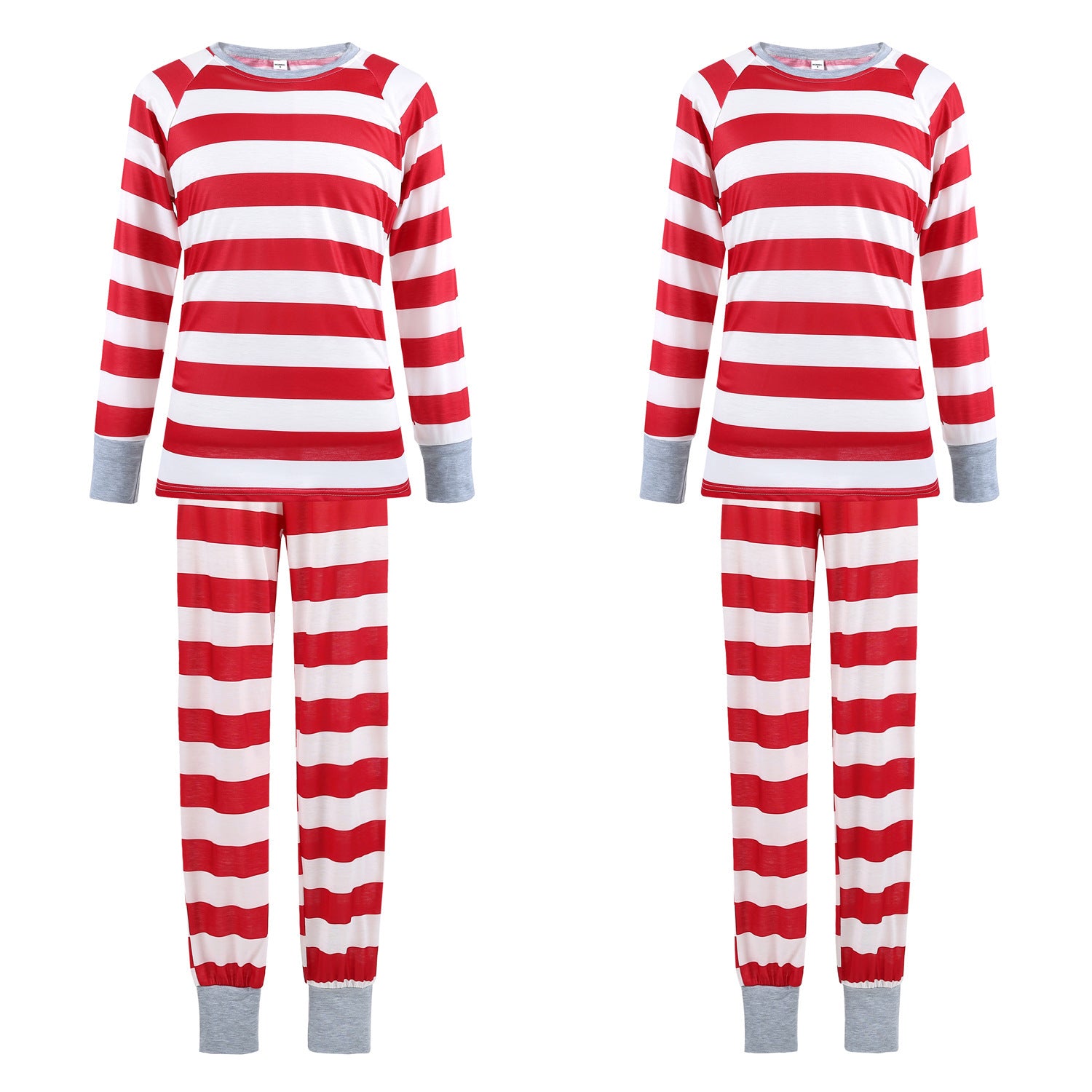Red Striped Parent-Child Pajamas – Homewear Matching Suit