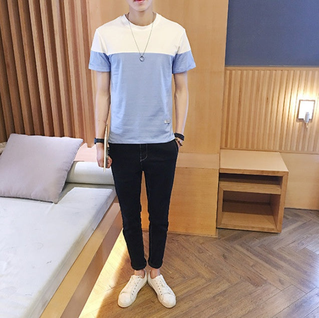 Korean Round Neck Short Sleeve Tee Unisex Chemical Fiber