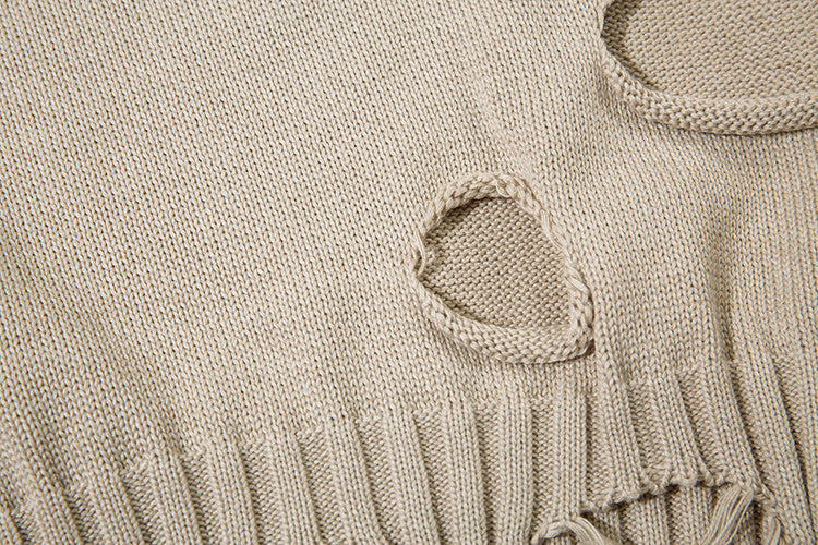 Regular Fit Ripped Pullover Acrylic Fiber Men's Casual