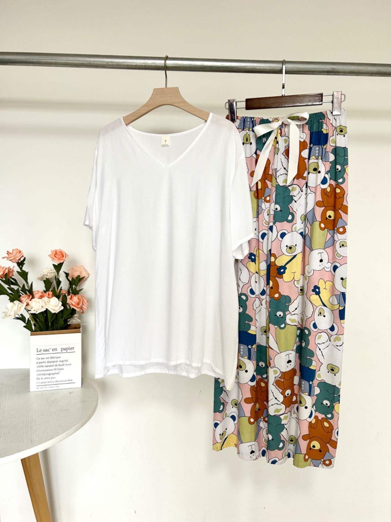 Summer Artificial Cotton Thin Short Sleeve Pants Loungewear Suit