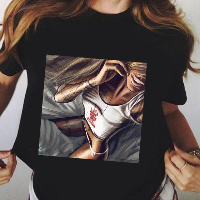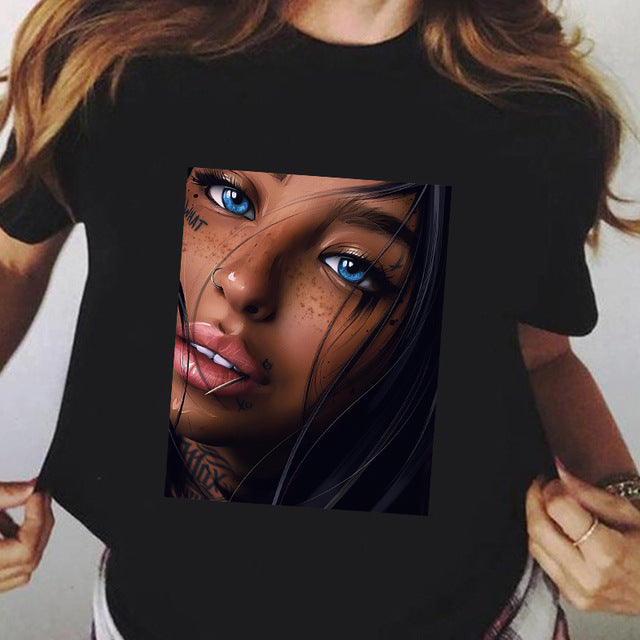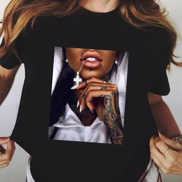 Summer Fashion Plus Size Black T-shirt Short Sleeve Women