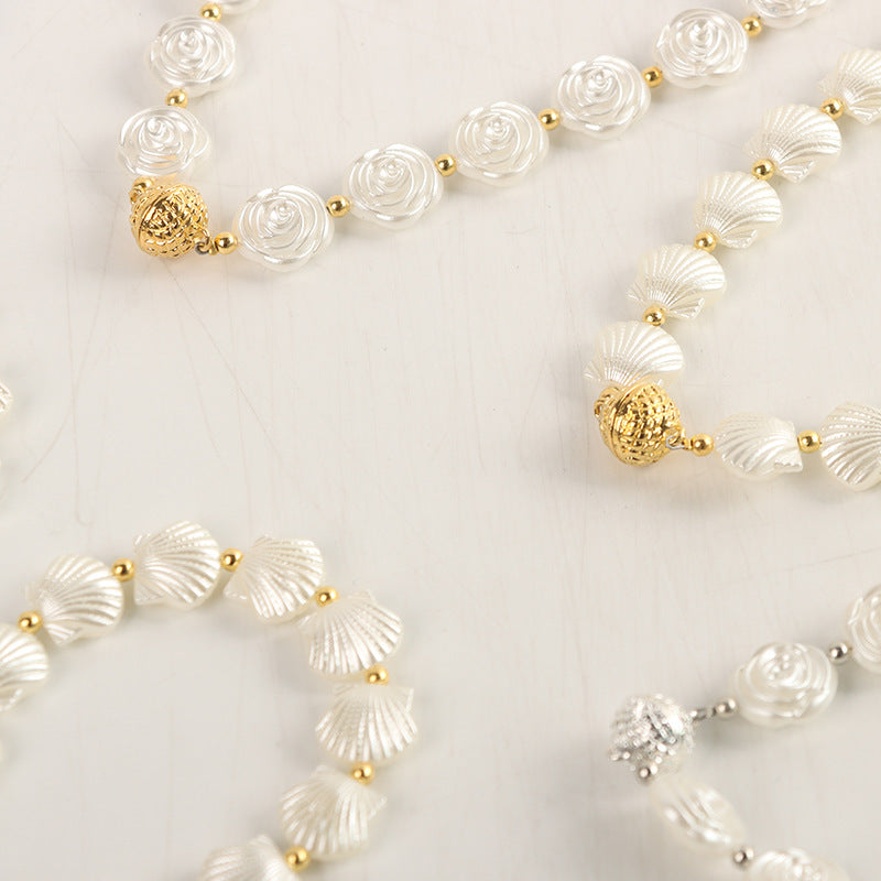 Crafted with safety and comfort in mind, the bracelet sits softly on the skin thanks to smooth acrylic beads and a lightweight alloy frame. The shell-tone finishes catch the light, making it suitable for office wear, casual weekends, or evening events. This unisex piece pairs well with other accessories for a coordinated look.