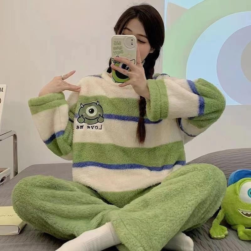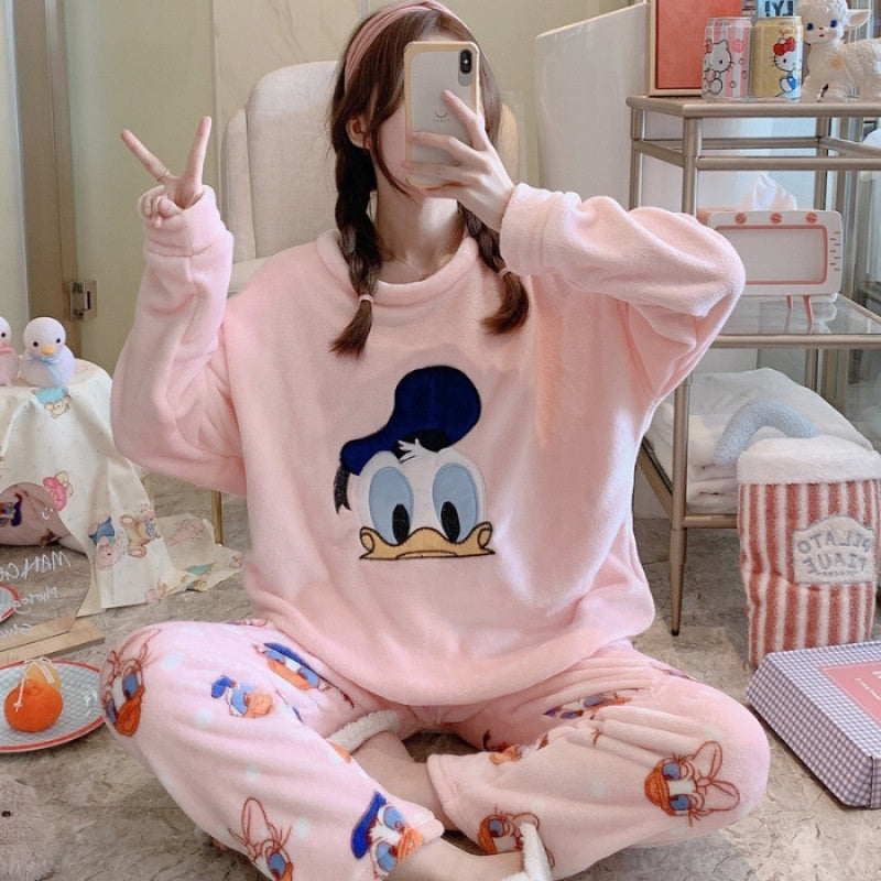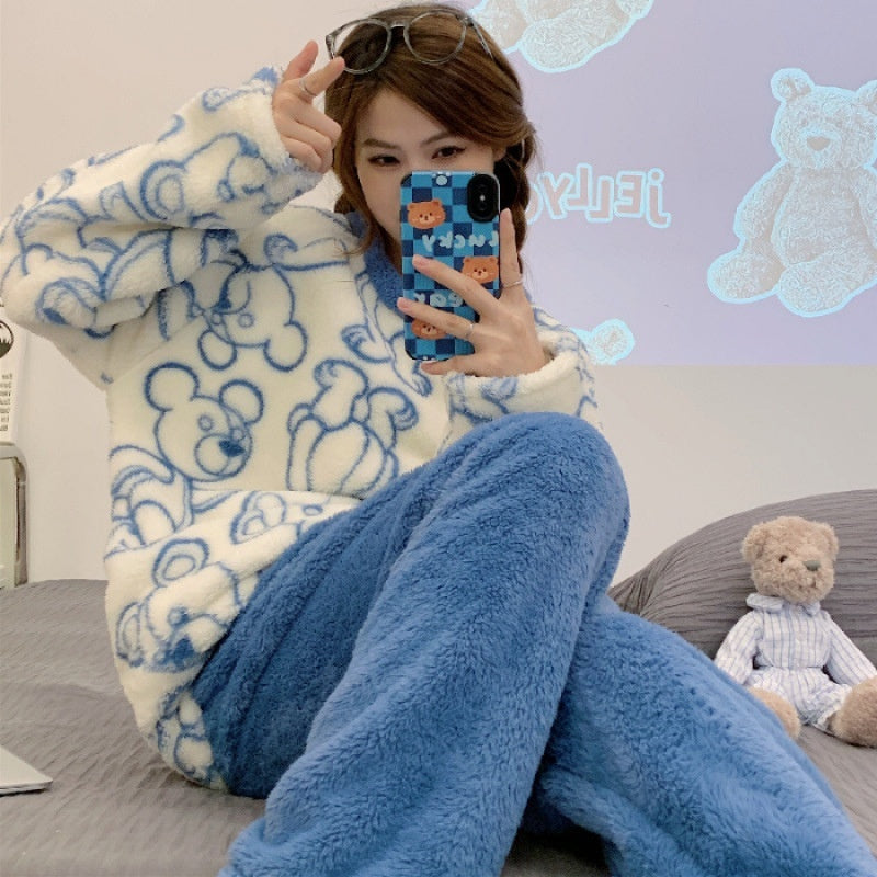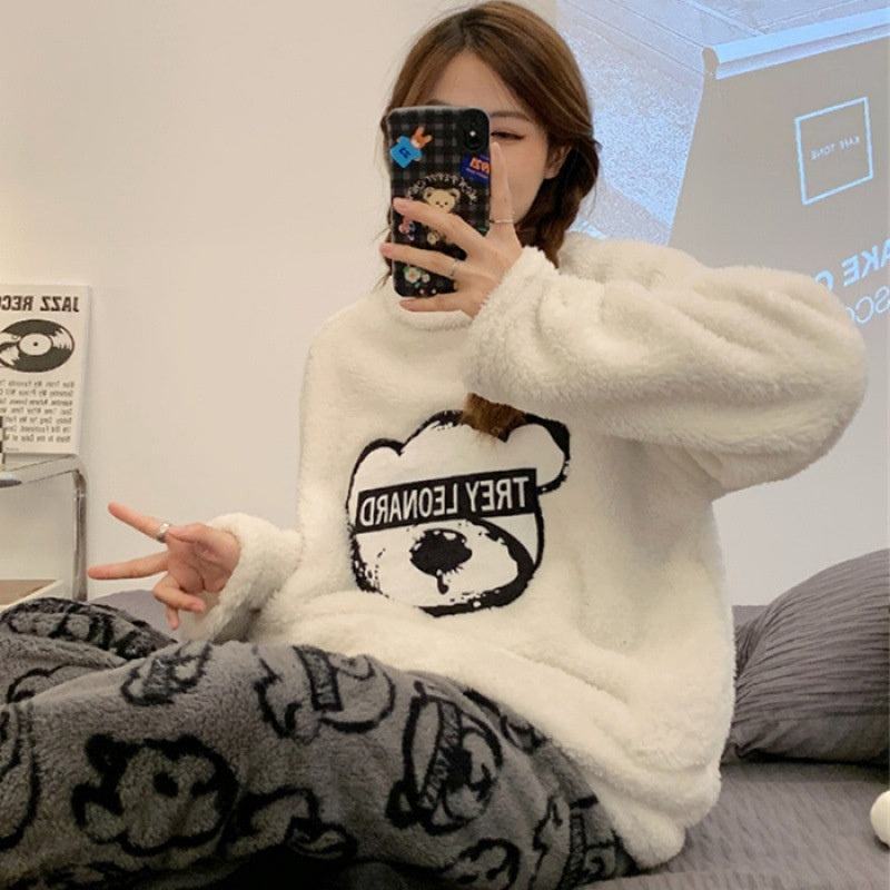Womens Coral Fleece Winter Pajamas Relaxed Fit Long Sleeve