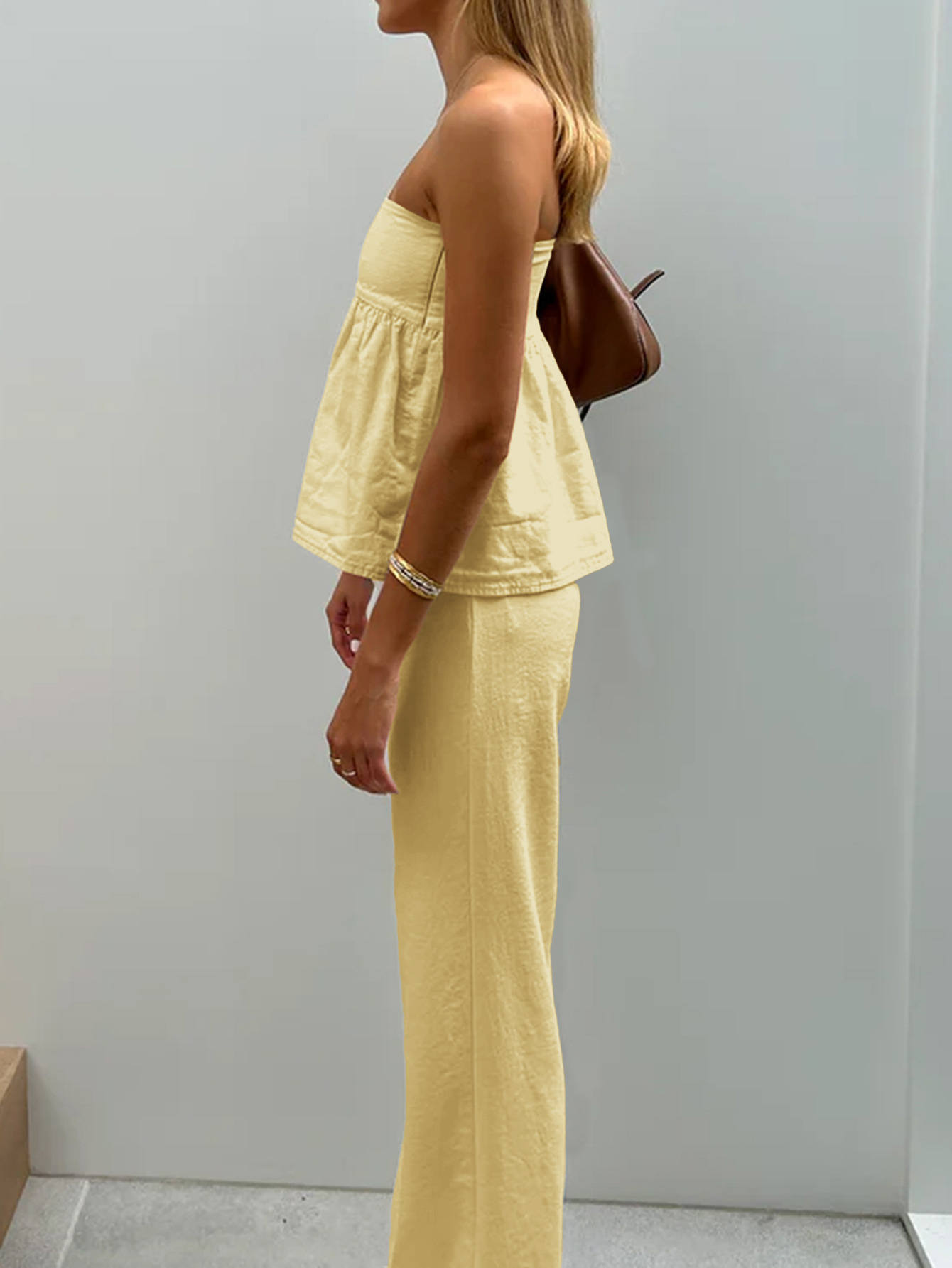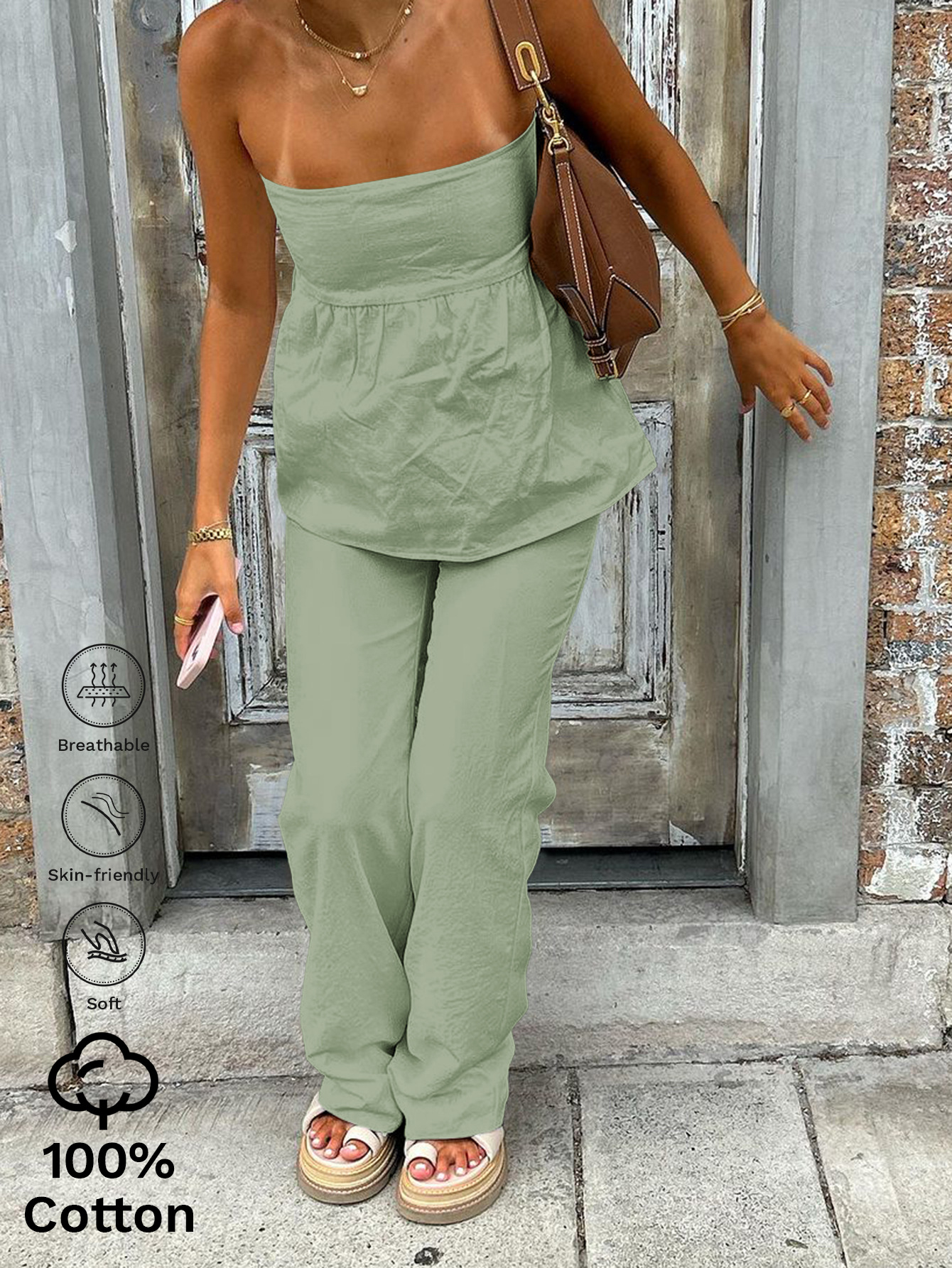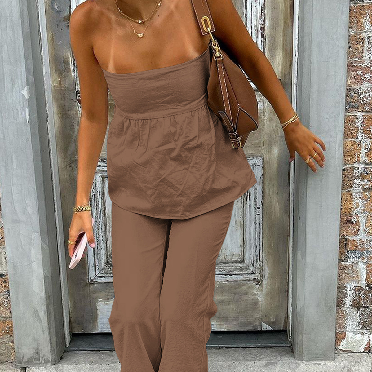 Women's Casual Tube Top Straight-leg Trousers Suit