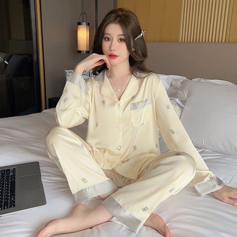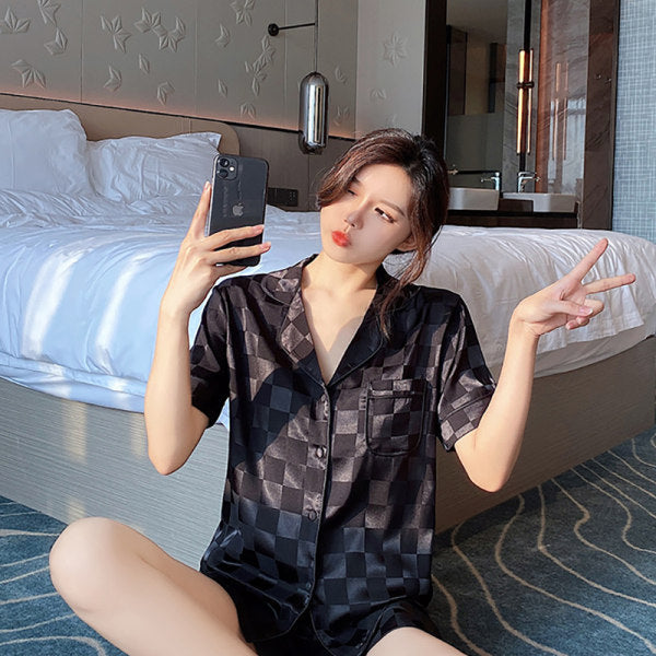 Women's Fashion Jacquard Plaid Ice Silk Home Wear Suit