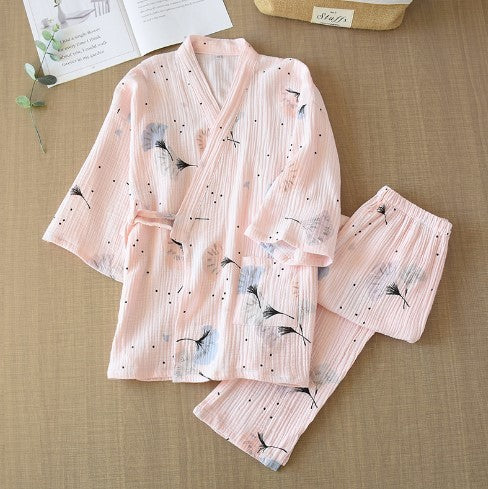 Women's Fashionable Cotton Kimono Gauze Pants Loungewear