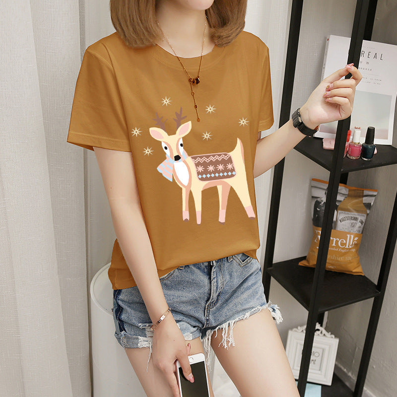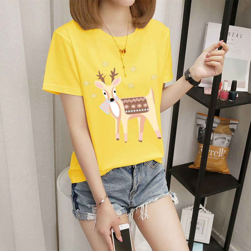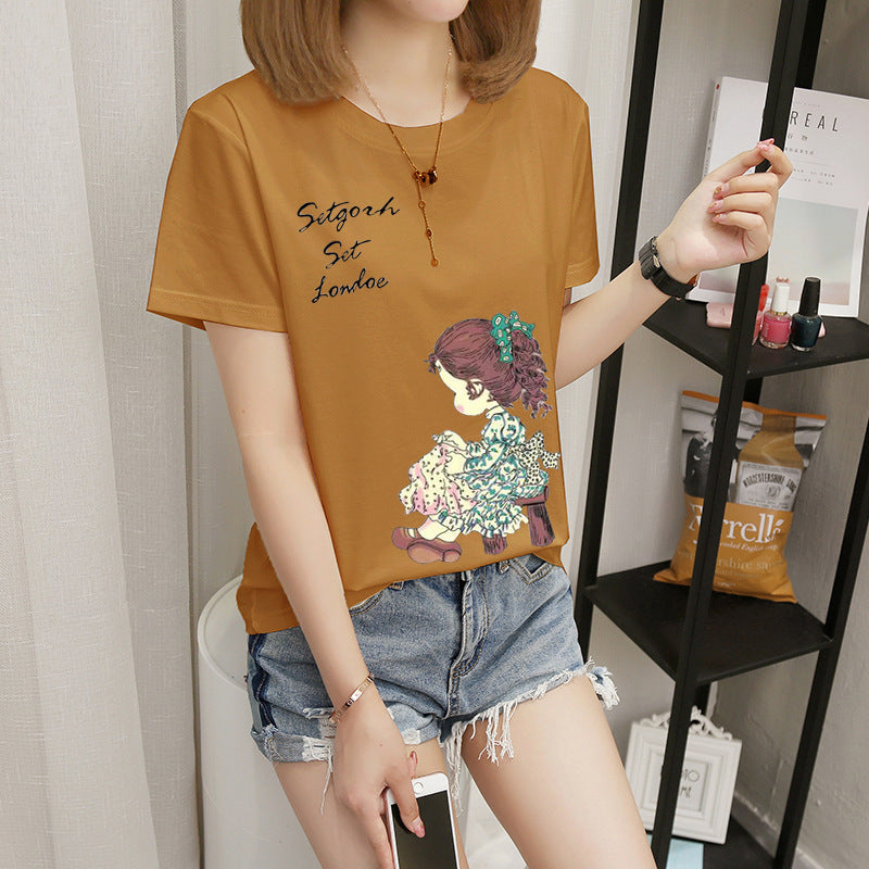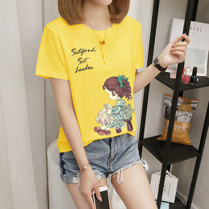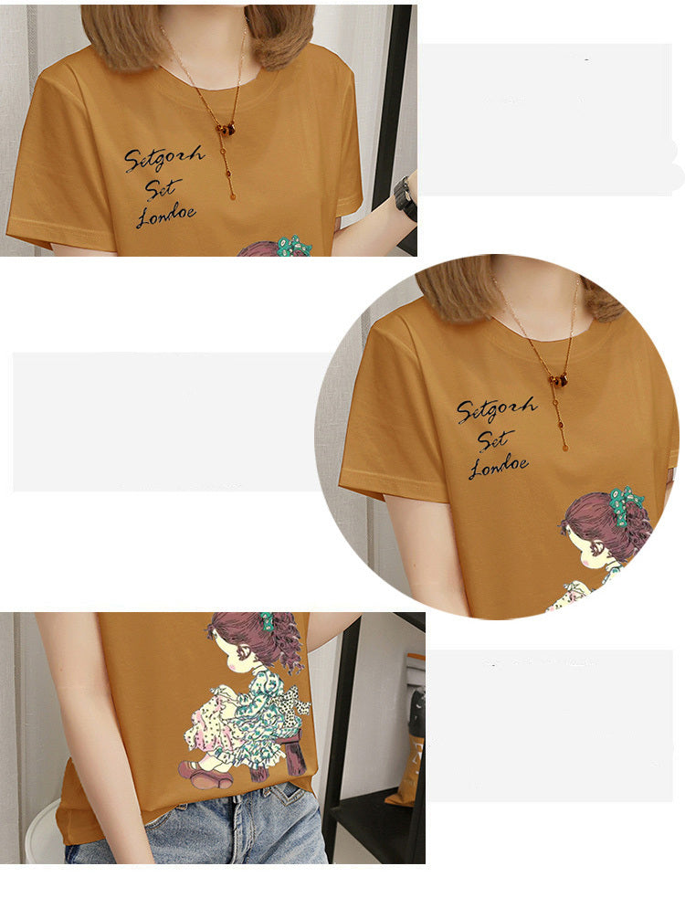 Elevate your everyday wardrobe with this Women's Short-sleeved T-shirt. Meticulously crafted from polyester fiber, it balances durability with a soft, refined hand. The restrained cartoon motif and Korean-inspired styling are realized through a dedicated printing and dyeing process, ensuring the design retains its clarity wash after wash. The short sleeves and ordinary-length cut (50 cm to 65 cm) offer a versatile silhouette that pairs effortlessly with everything from denim to tailored separates. Offered in a curated palette—white, pink, black, yellow, blue, green, purple, and brown—this piece embodies timeless value and a discreet collector's appeal. Production is deliberate and limited, reinforcing its exclusive, enduring character.