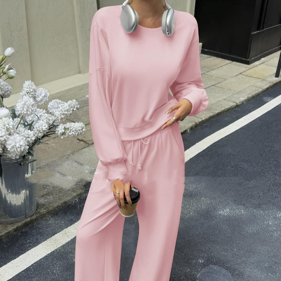 Women's Solid Color Casual Long Sleeves Trousers Two-piece Set