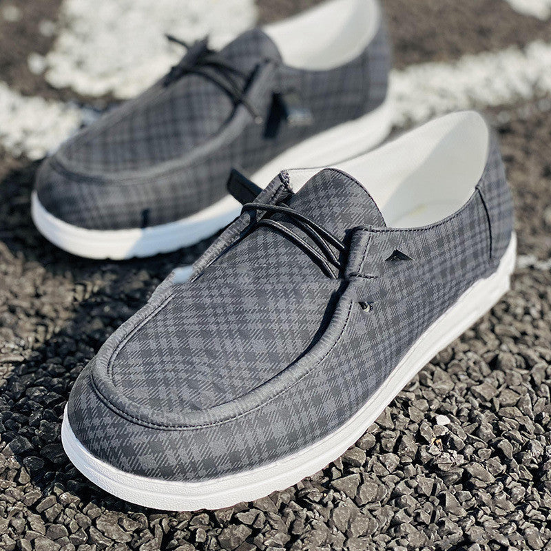 Step into effortless style with our women's flats that blend a plaid colorblock design with everyday comfort. These low-cut flats feature a breathable round-toe silhouette ideal for summer days and city errands.