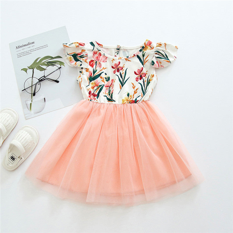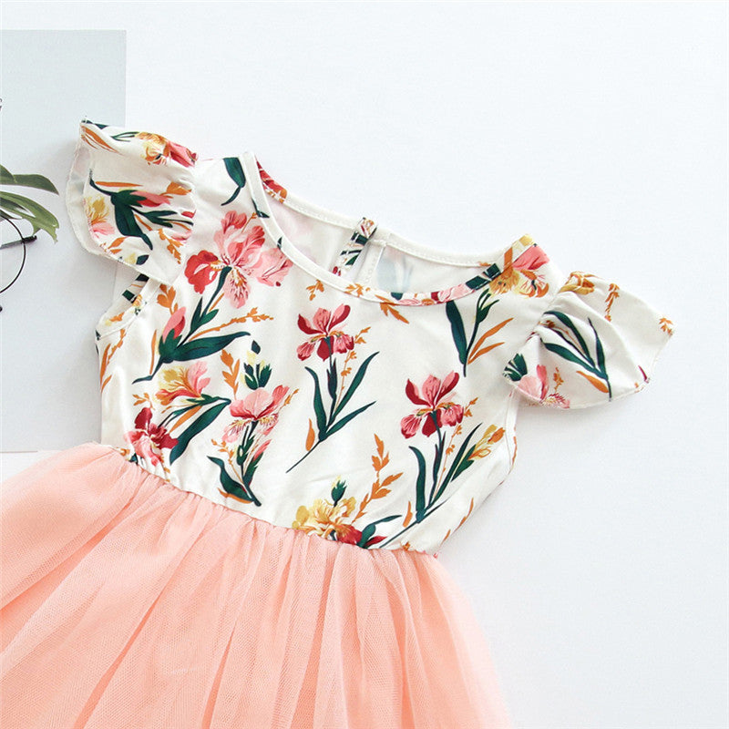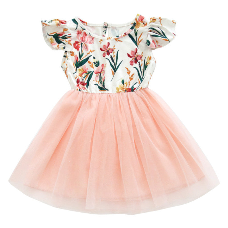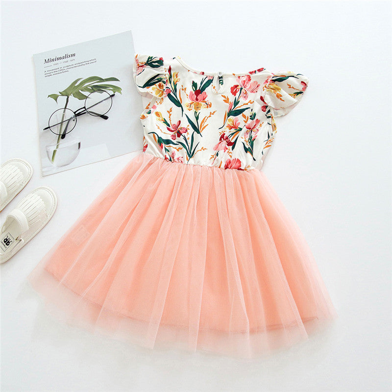 Girls Princess Dress Net Overlay Pleated Skirt Regular Fit