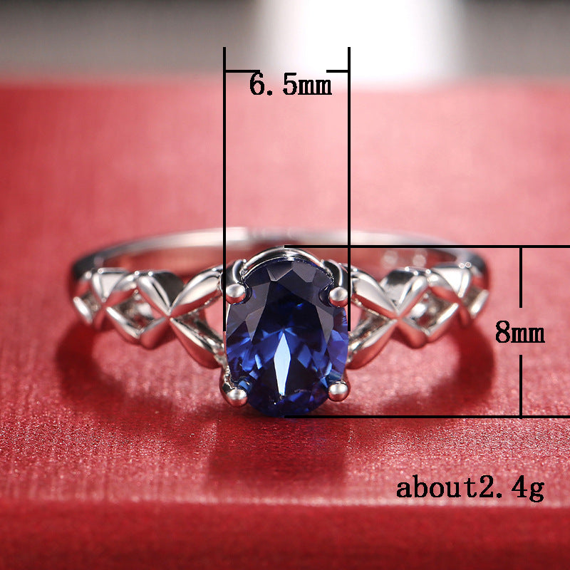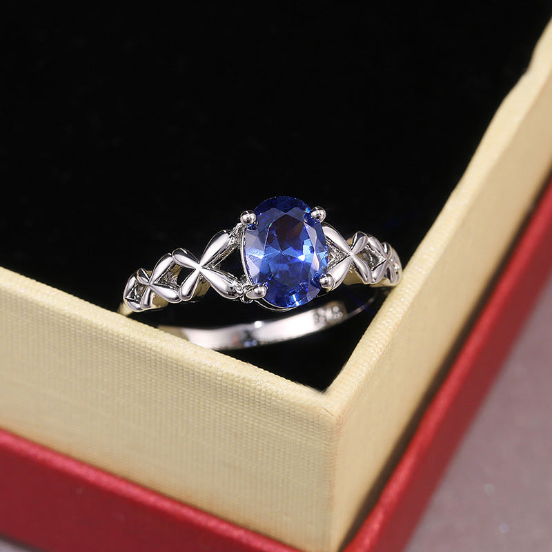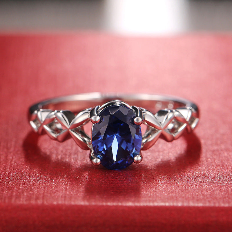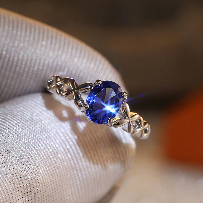 Geometric Copper Ring Blue Zircon Womens Engagement