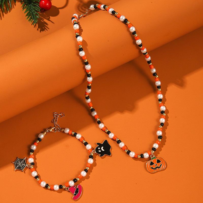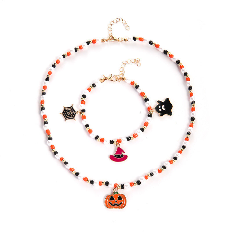 Halloween Ghost Pumpkin Necklace Horror Bracelet Necklace Jewelry