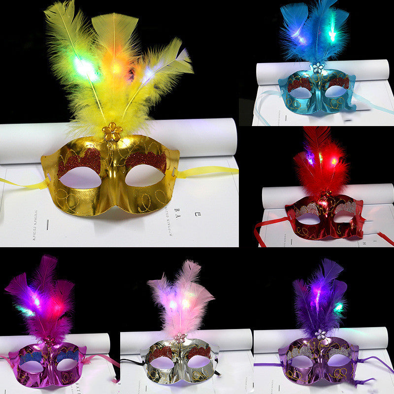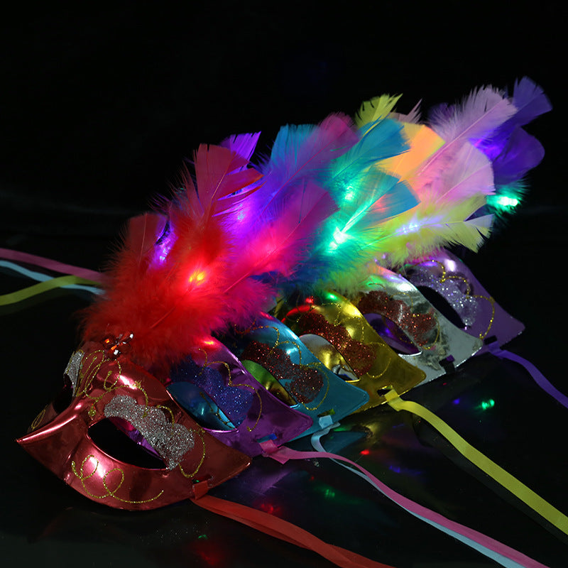 Halloween Glowing Fluff Fiber Led Feather Mask