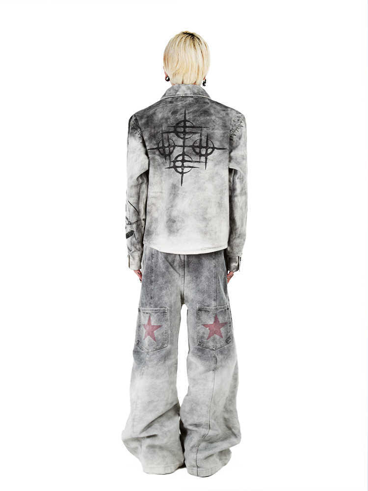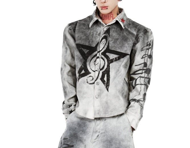 Unisex Sub Lapel Casual Jacket Distressed Cotton Printed