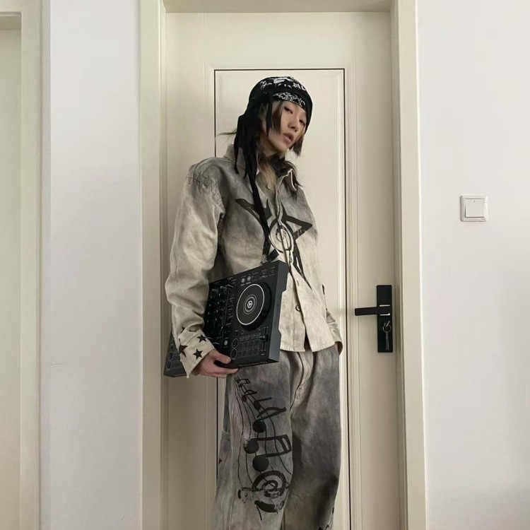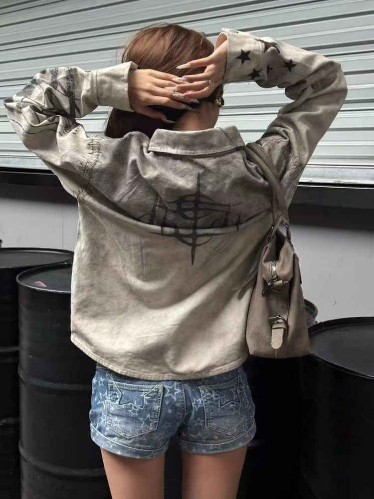 This high-grade casual jacket features a distressed cotton design with printed details for a modern, versatile look.