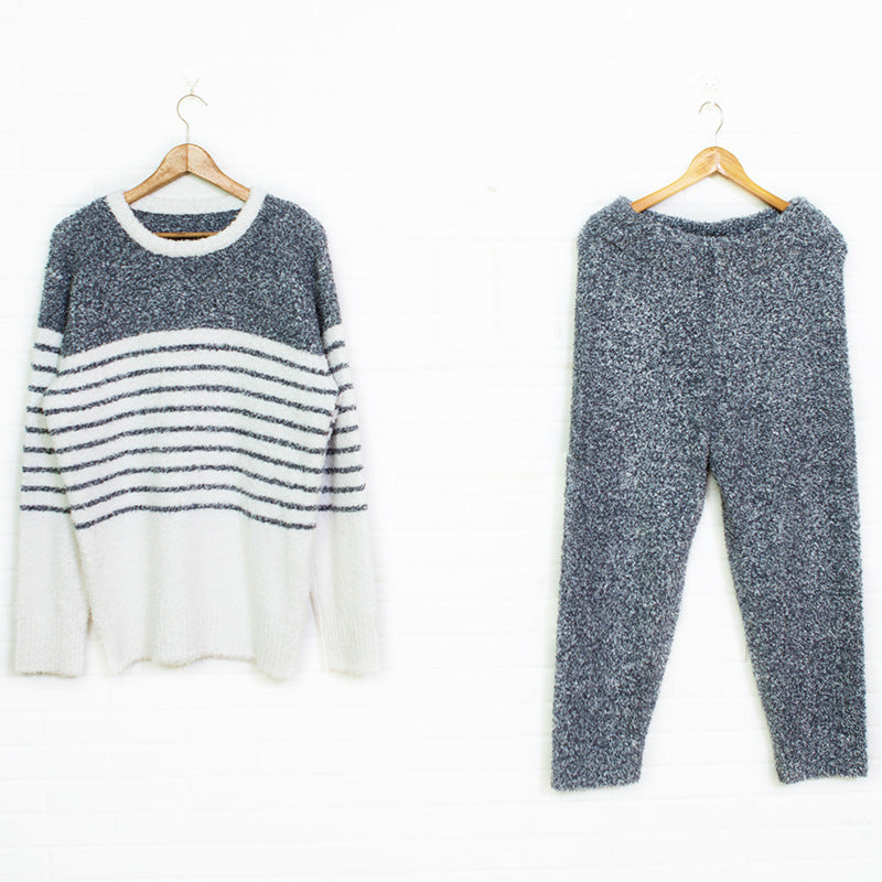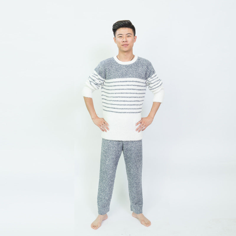 New soft striped men's pajamas in autumn and winter