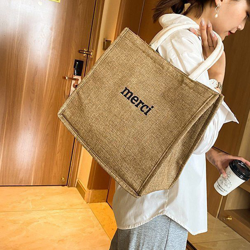 Unisex Canvas Shoulder Bag Large Capacity Letters Pattern