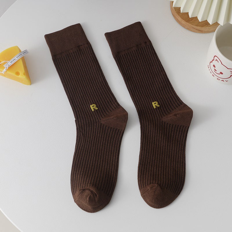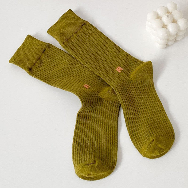 Socks Women's Long Cotton Socks Candy Color Japanese R Letters