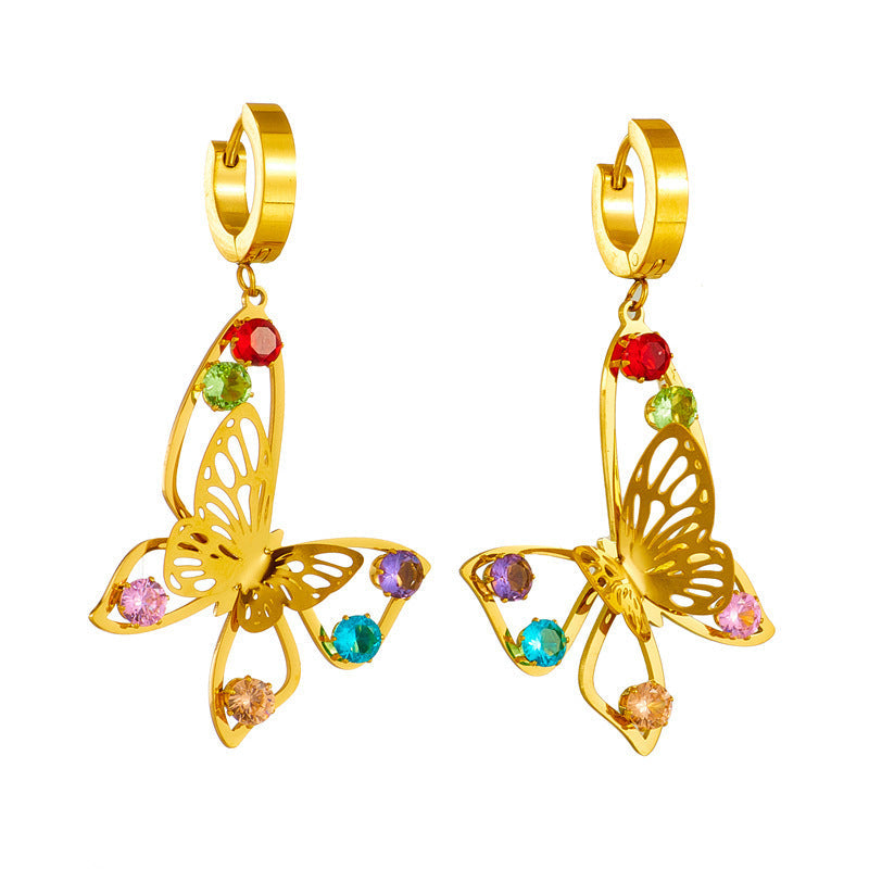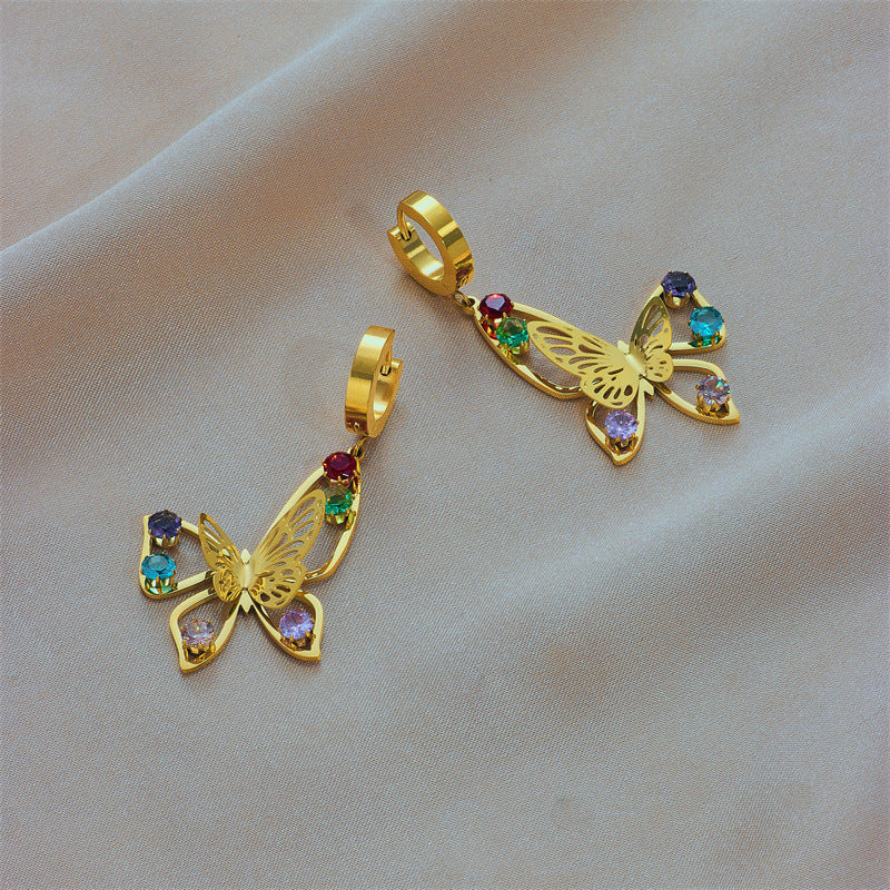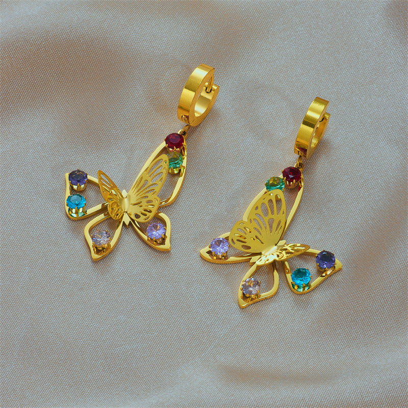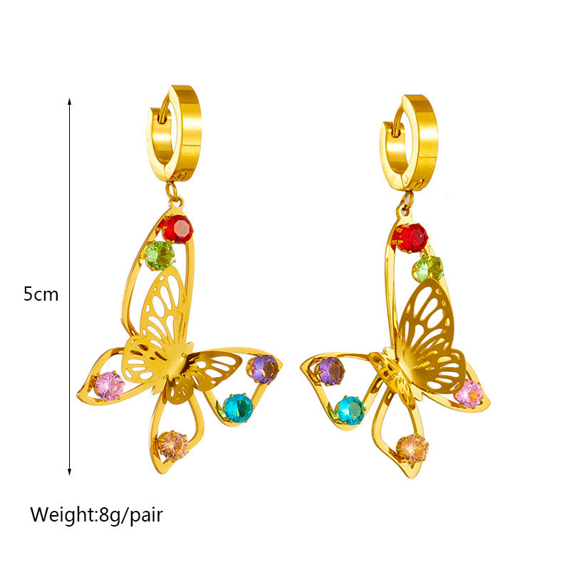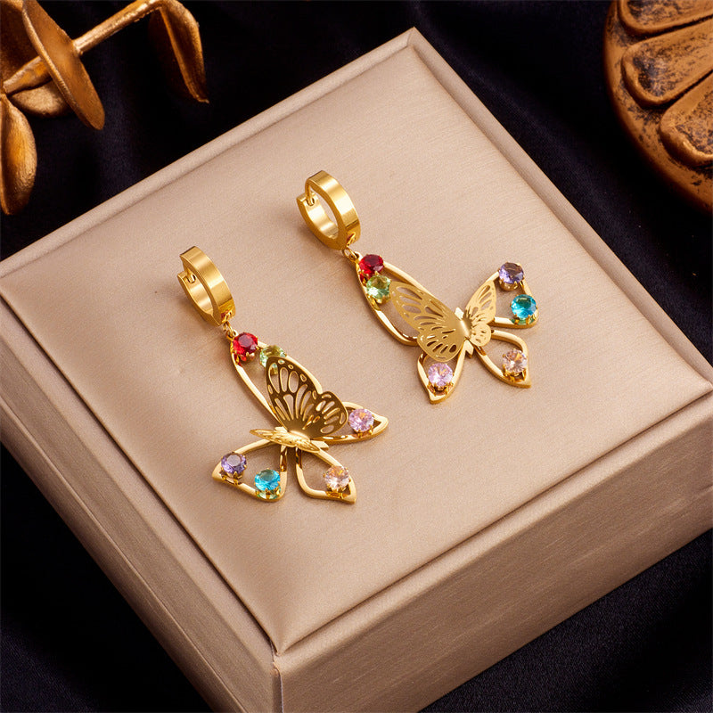 Womens Titanium Steel Hollow Jeweled Butterfly Earrings