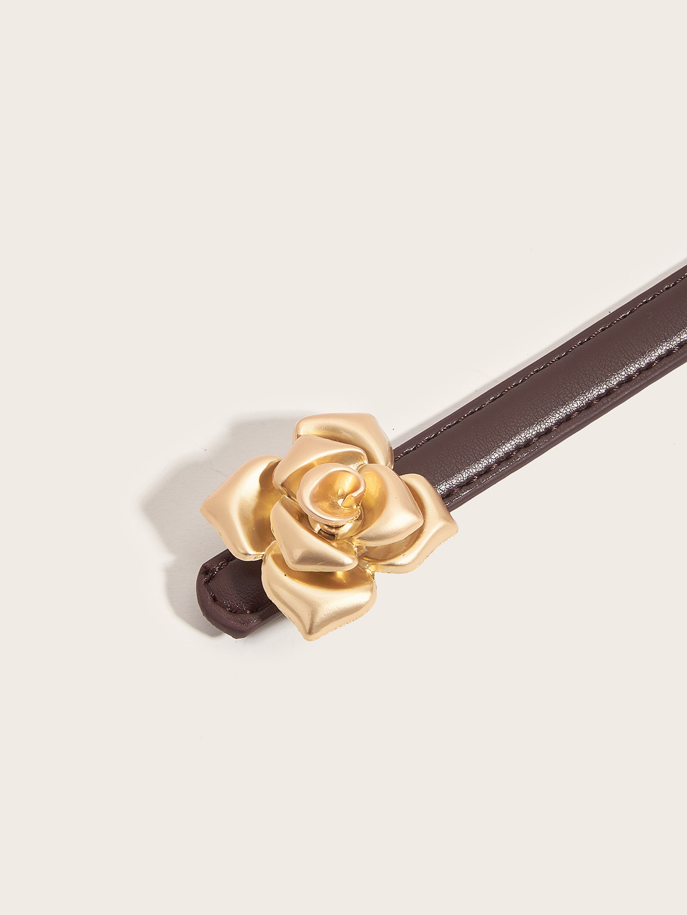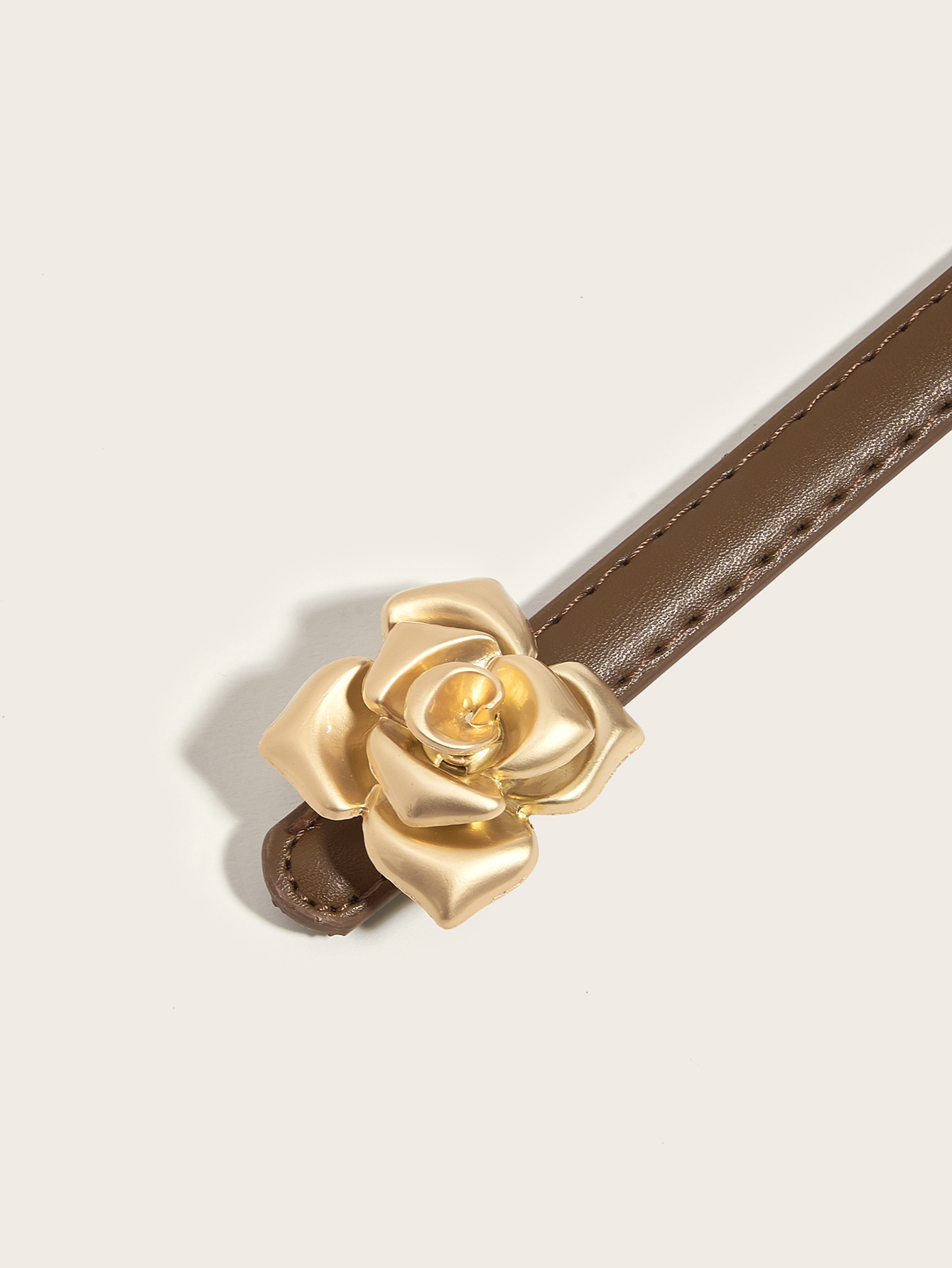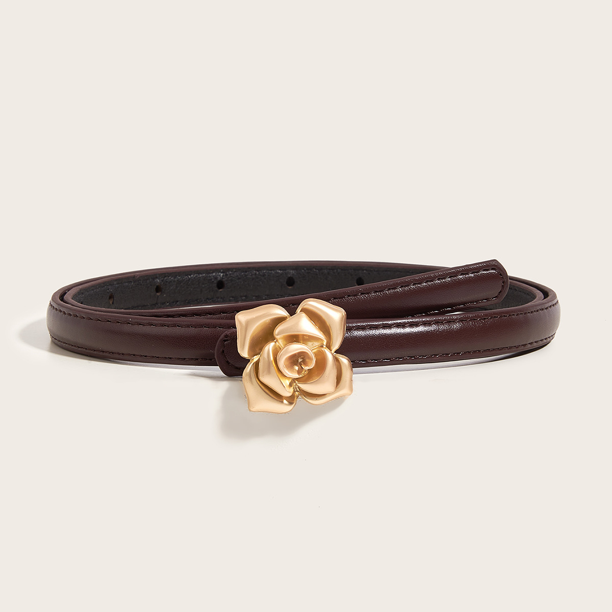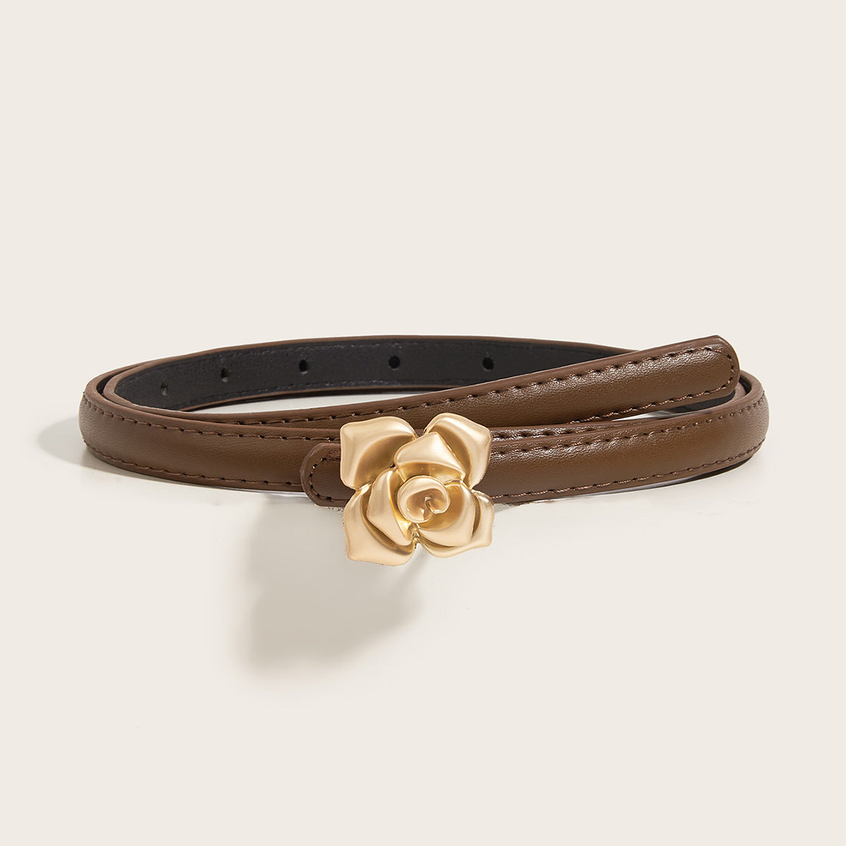 The 1.3 cm profile with the three dimensional flower strip looks lovely. Snap button fastening is quick and lays flat on jeans and small suit pants.