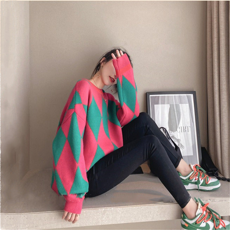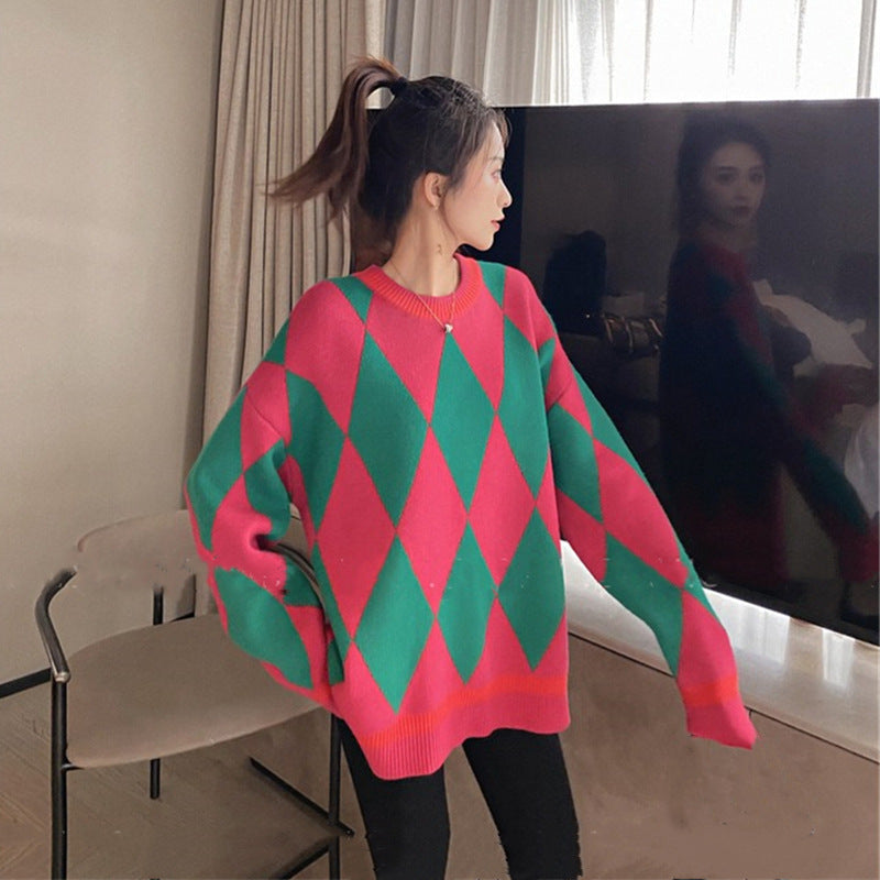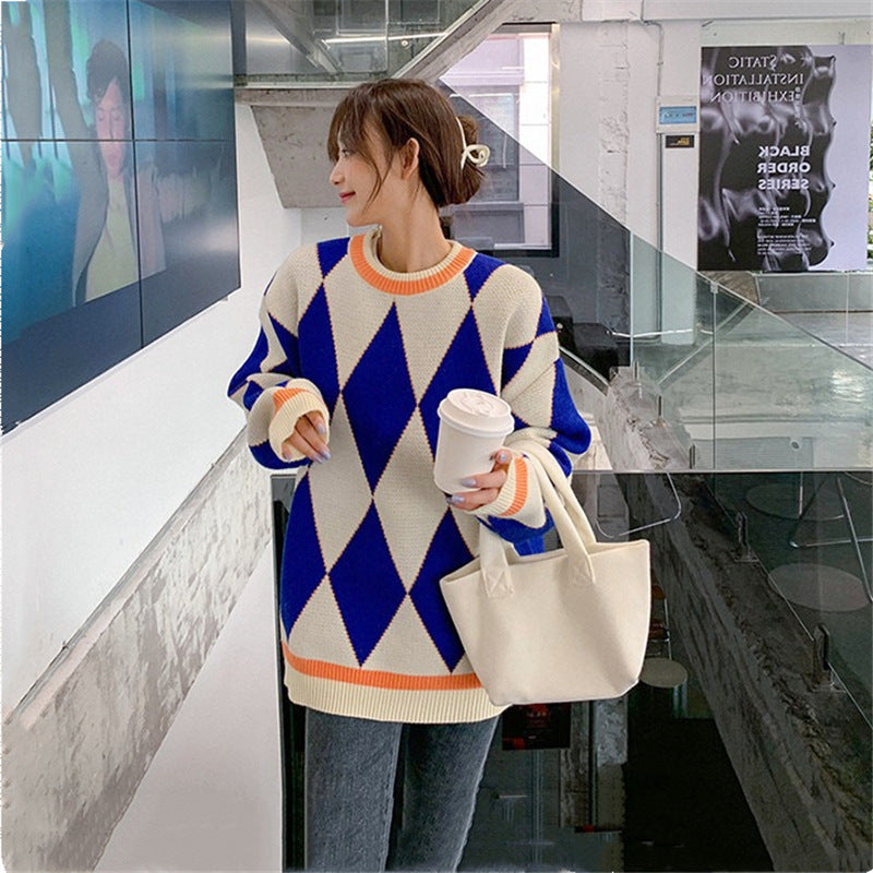 Exquisitely tailored, the Retro Diamond-shaped Contrast Color Pullover for women embodies quiet luxury. Crafted in premium polyester fiber, its geometric motif and restrained color palette—beige, blue, and rose red—confer a timeless, collector-worthy appeal. Each stitch speaks to disciplined craft and provenance, inviting meticulous wearers to invest in a piece designed to endure beyond seasons.