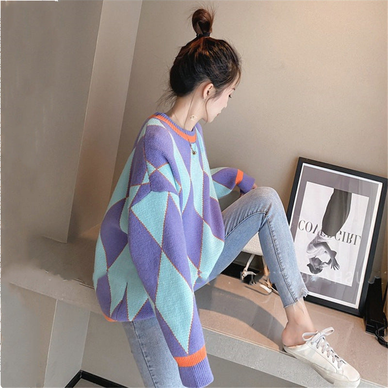 Women's Diamond Geometric Pullover Polyester Knit Top