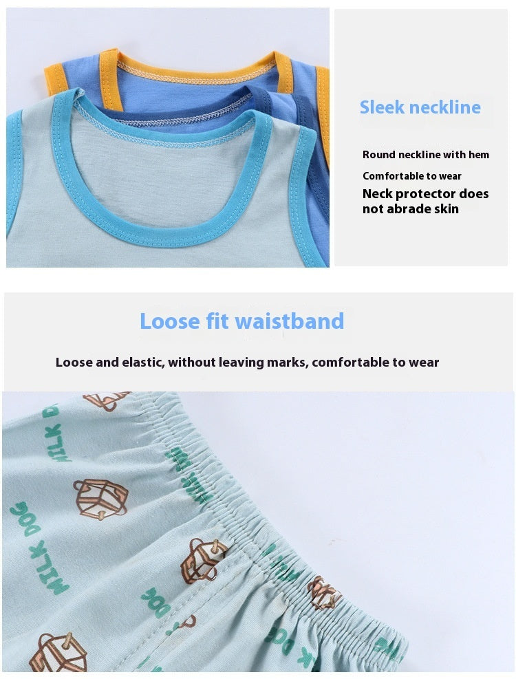 - Two-piece set includes a sleeveless cotton vest and matching shorts for summer comfort.