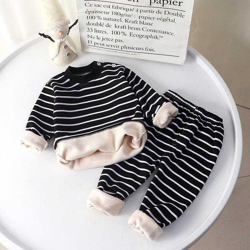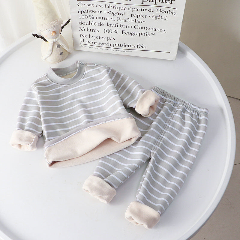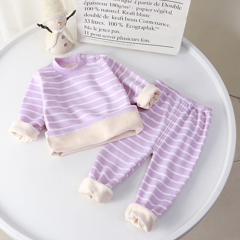 Kids Velvet Thermal Underwear Set Striped Polyester