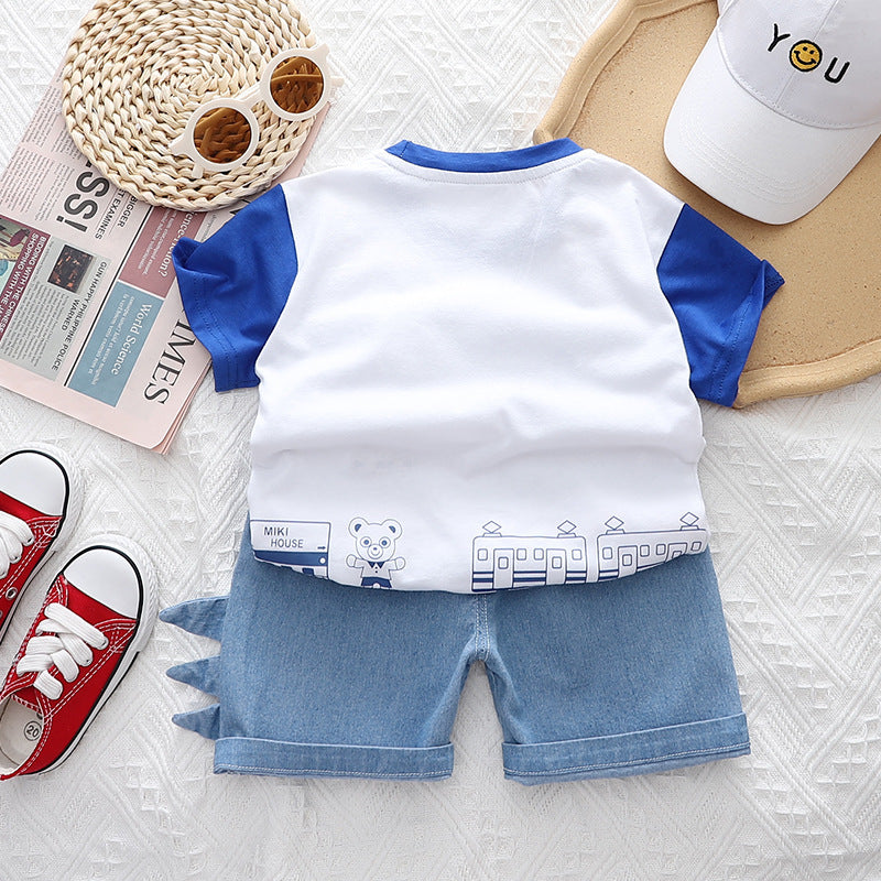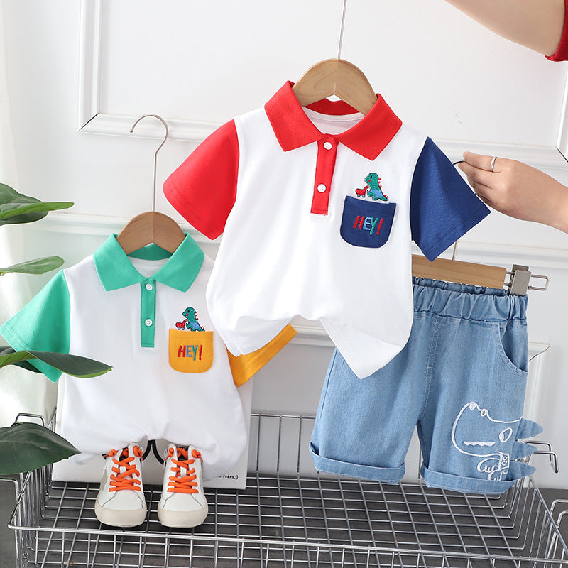 The Korean Turnover Neck Cotton Short Sleeve Shirt Shorts Boys set blends playful style with everyday comfort. Crafted from soft cotton, it keeps kids cool and comfy.