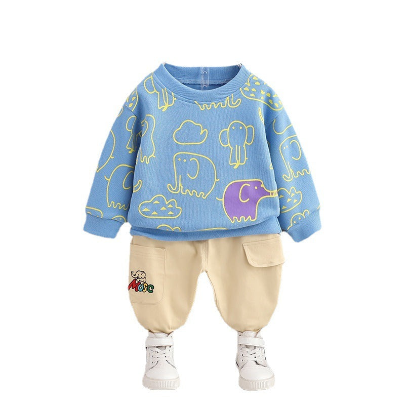 Kids Korean Style Hooded Cotton Trousers Two Piece Set delivers cozy comfort and playful style for everyday adventures. Made from soft cotton with a hooded top and long sleeves, this two-piece outfit keeps kids warm and looking adorable in any season. The Korean-inspired design blends animal, cartoon, and letter patterns for a charming look that kids love.