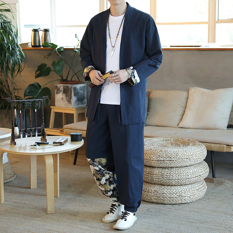 New Spring And Autumn Chinese Style Suit Mid-Length Tang Suit Men's Youth Retro 2-Piece Set One Drop Delivery