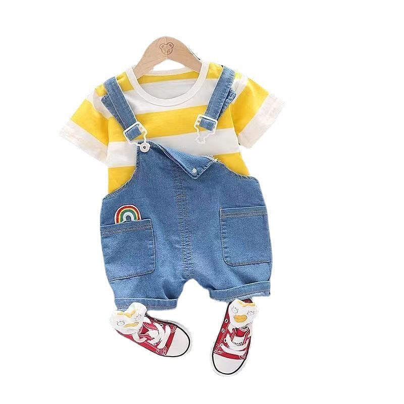Kids Two Piece Bib Short Sleeve Summer Outfit Soft Fabric